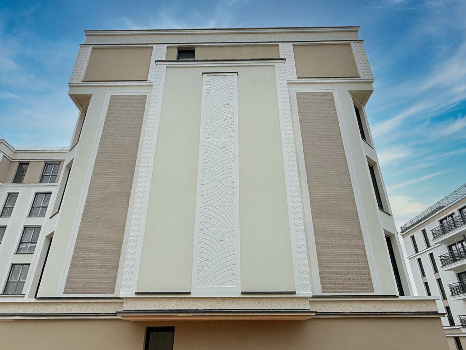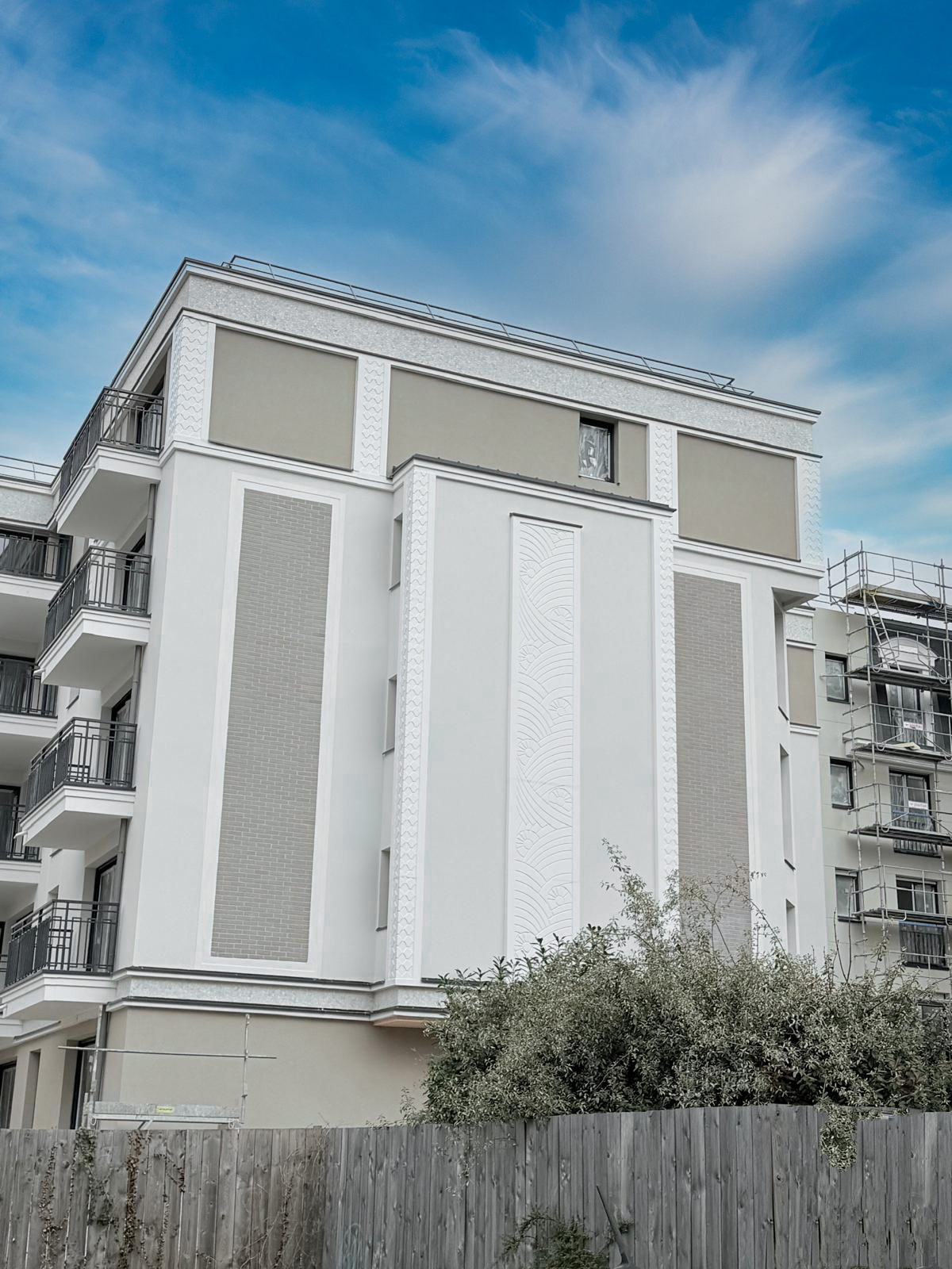 Les éléments de parement appliqués sur façade, appelés modénatures en préfabriqué architectoniques, enrichissent l’architecture d’un bâtiment en jouant avec les formes, les volumes et les reliefs. Fabriqués en atelier à partir de moules spécifiques, ils offrent une grande liberté de conception, grâce à la possibilité d’incorporer des motifs, des profils dessinés ou des lignes décoratives sur mesure.